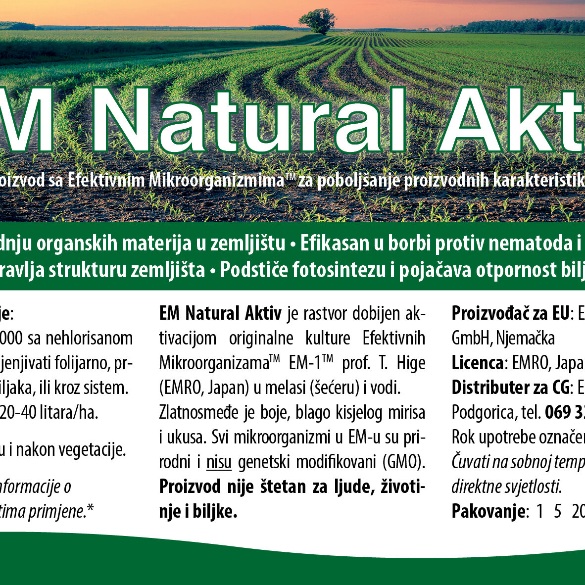 *Preporuka je da se koristi u kombinaciji sa preparatom EM Natural Aktiv.